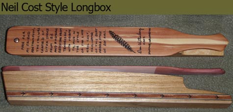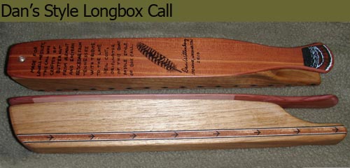 I make long box turkey calls in two styles, Neil Cost’s original style and one I just call Dan’s style. A discussion of styles, wood types, construction particulars can be found under the “About Dan’s calls” tab. Below you will see a pictorial display of some of the calls and wood and types I offer.